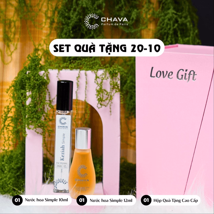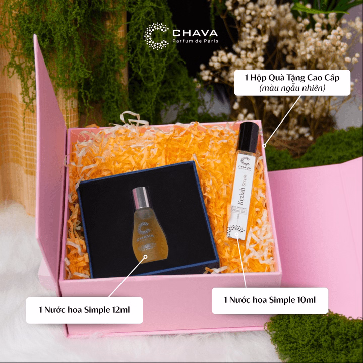 Tên sản phẩm: [Combo Quà Tặng Nước Hoa 20-10] 1 Chai Nước Hoa Nữ Dạng Lăn Simple 12ml + 1 Chai Nước Hoa Nữ Dạng Xịt Simple 10ml + Hộp Quà Tặng Cao Cấp – Chava