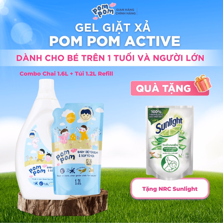 Pom Pom Active Sạch Mới, Thơm Mềm, Lưu Hương, Dưỡng Vải, Bền Màu