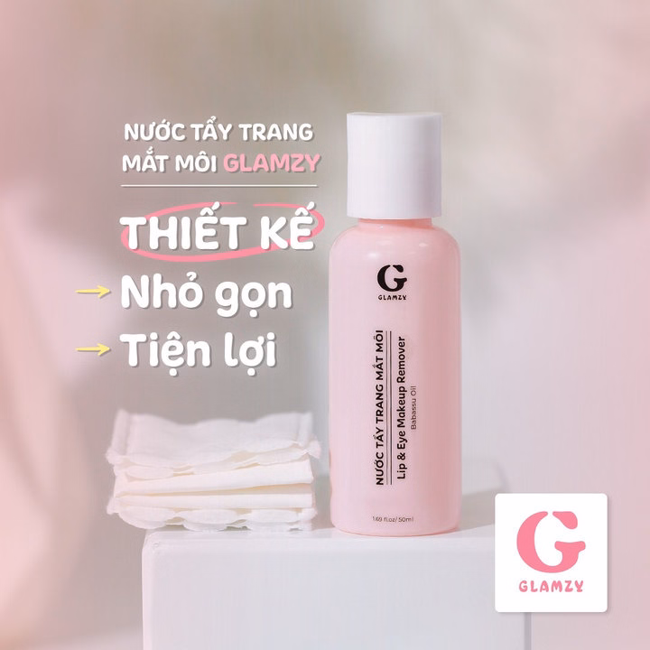 Nước tẩy trang mắt môi glamzy lip & eye makeup remover làm sạch sâu, dịu nhẹ mini 50ml
