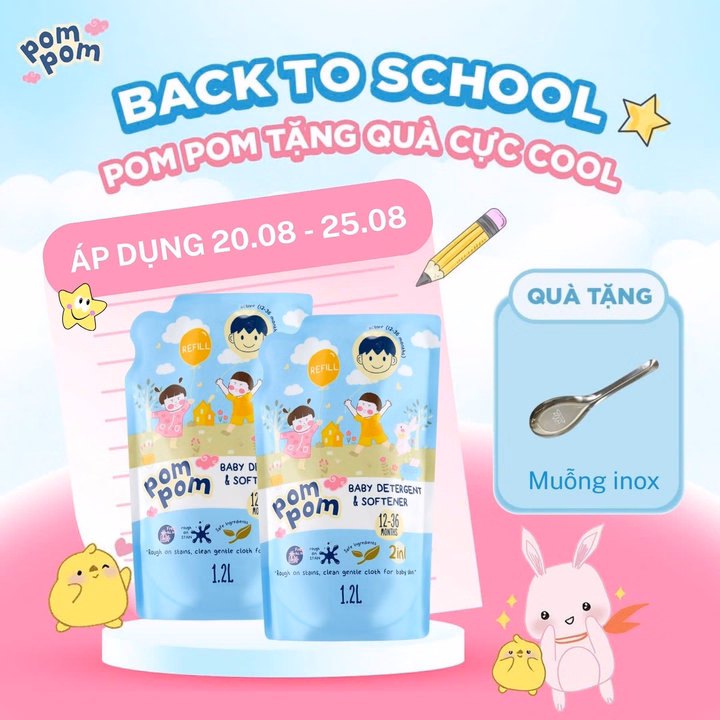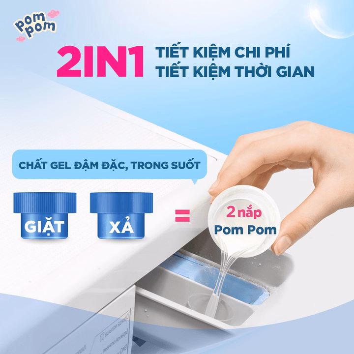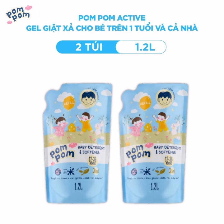 Gel Giặt Xả 2in1″Lành” cho cả nhà Pompom Active Sạch Sâu Vết bẩn – Dưỡng Mới Vải – Lưu Hương Tích hợp Kháng Khuẩn an toàn cho đồ lót-Combo Túi 1.2L