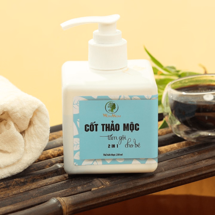 Tên sản phẩm: Cốt Thảo Mộc Tắm Và Gội Cho Bé, Nuôi Dưỡng Làn Da Mềm Mại Và Thơm Tho Tóc Bé Wonmom 250ml