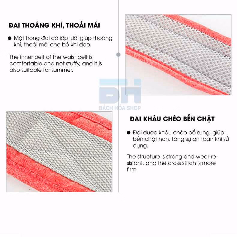 Mặt trong đai có lớp lưới giúp thoáng khí cho bé khi đeo