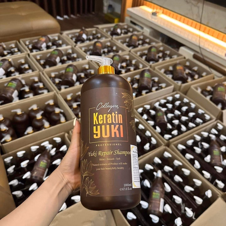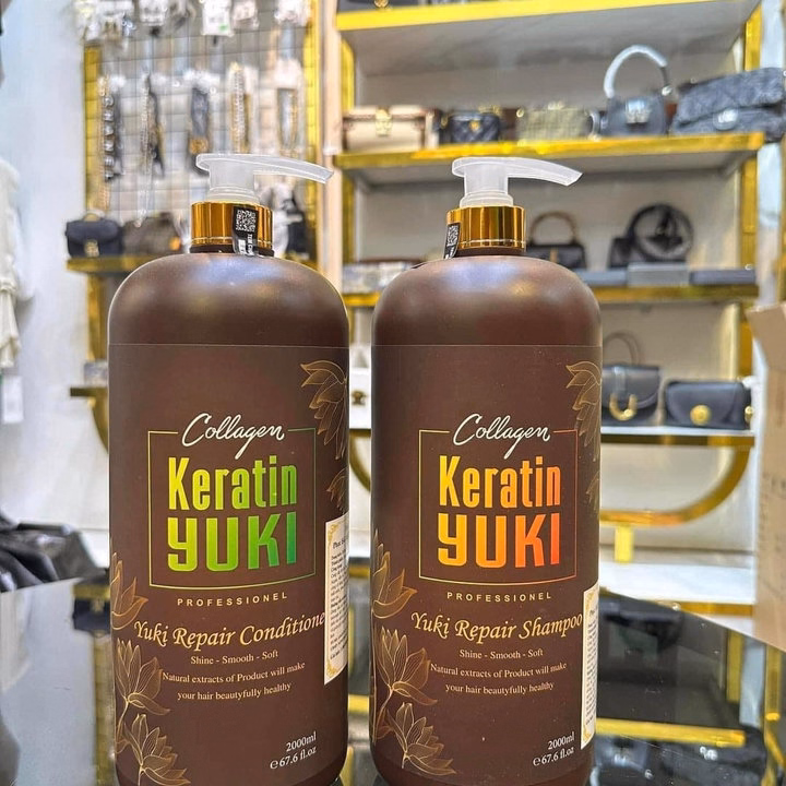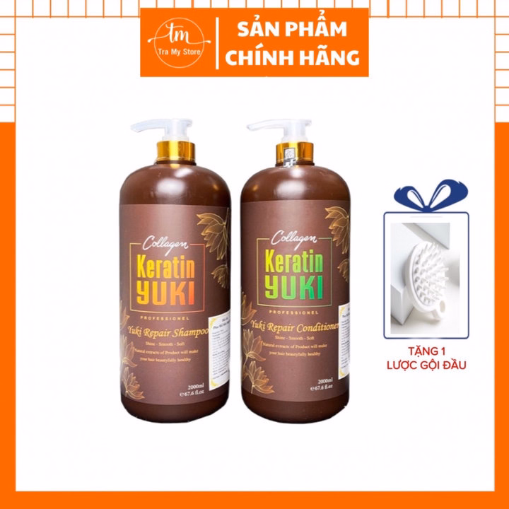 Dầu Gội Xả Collagen Keratin Yuki 2000ml | Giảm Rụng Tóc, Kích Mọc Tóc, Phục Hồi Tóc Hư Tổn, Mô tả sản phẩm:Dầu gội đầu Keratin Yuki cặp dầu gội xả phục hồi hư tổn giảm rụng tóc 2000ml chính Hãngdung tích : 2000ml / 1 Chaixuất Xứ : Việt Namcông Dụngprotein đậu nành tự nhiên kết hợp với tinh chất thực vật làm sạch tóc với độ ẩm không trọng lượng và sửa chữa protein bị mất, giúp phục hồi, cân bằng và duy trì mức tối ưu mà tóc bạn không bị bí nặng và cứng tóc, tóc sẽ bóng và mượt trong thời gian dài . Yếu tố bổ sung nước tự nhiên kết hợp với công nghệ Voka làm sạch và bảo vệ, nó có thể sửa chữa lớp biểu bì của tóc bị hư tổn và tái cấu trúc chức năng bổ sung độ ẩm, do đó dầu gội và dầu xả bóng mượt Keratin Yuki sẽ giúp cho tóc uốn nhuộm sẽ mềm mượt hơn Tinh chất đại dương tự nhiên kết hợp với yếu tố độ ẩm để bảo vệ tóc , nó có thể hạn chế và ổn định độ dầu, giúp tóc bóng mượt , dễ quản lý và làm mới tóc Dầu gội và dầu xả tóc bóng mượt Keratin Yuki không gây kích ứng da, phù hợp với mọi loại Tóccách sử Dụnglàm ướt tóc, thoa một lượng dầu gội vừa đủ lên tóc mà massage trong 8-15 phút , sau đó xả sạch bằng nước, thoa kem xả tóc cùng loại lên , massage đều 5-10 phút rồi xả lại sạch bằng nước, dùng khăn bông mềm thấm khô tóc Cam kết và dịch vụ bán hàng: Hoàn trả 100% nếu có lỗi do nhà sản xuất. Cung cấp các sản phẩm theo đúng tiêu chuẩn với chất lượng tốt nhất Giá cả cạnh tranh nhất Đáp ứng yêu cầu của khách hàng trong thời gian ngắn nhất Tư vấn miễn phí 24/24 cho quý khách hàng về các sản phẩm của chúng tôi, bất cứ thắc mắc gì trước và sau khi mua sản phẩm