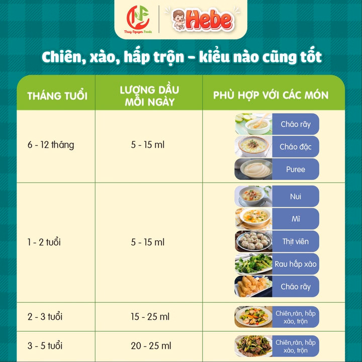 – Tên sản phẩm: Hebe Dầu Chiên Xào Tự Nhiên Cho Bé