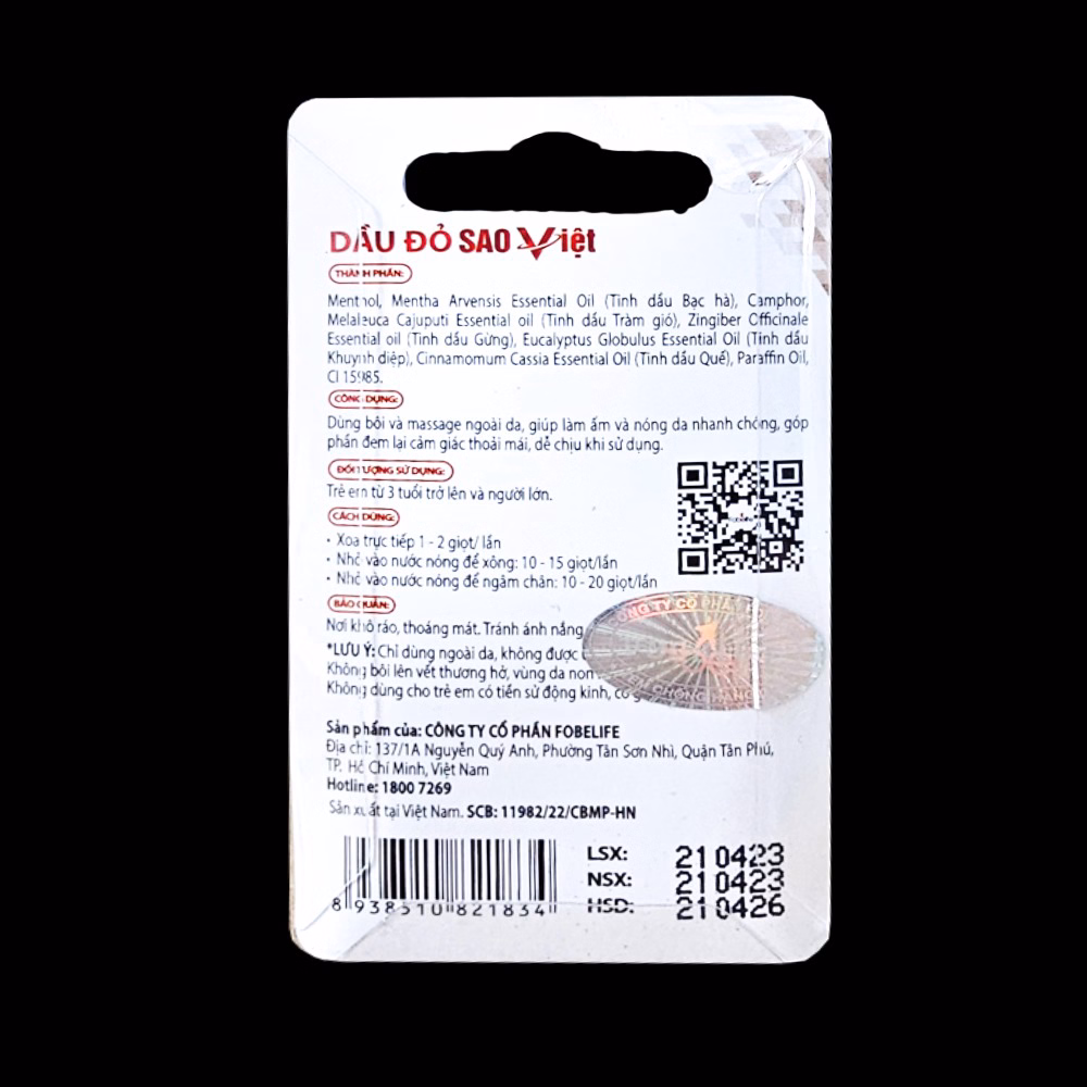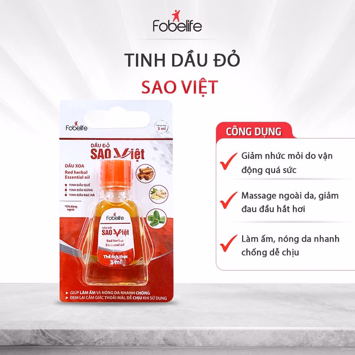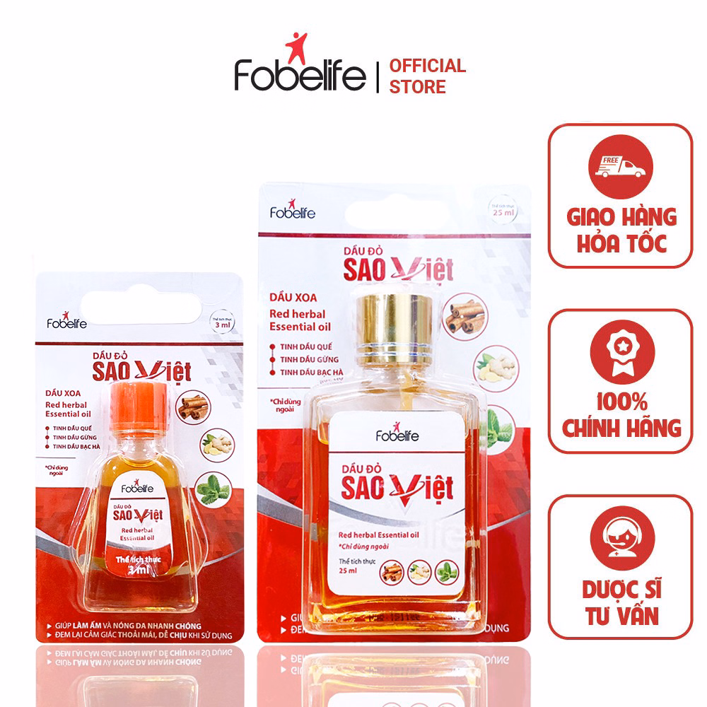 Dầu Đỏ Sao Việt Xoa Bóp Giúp Giảm Đau Nhức Vai Gáy, Bong Gân Trật Khớp, Thông Mũi – Fobelife