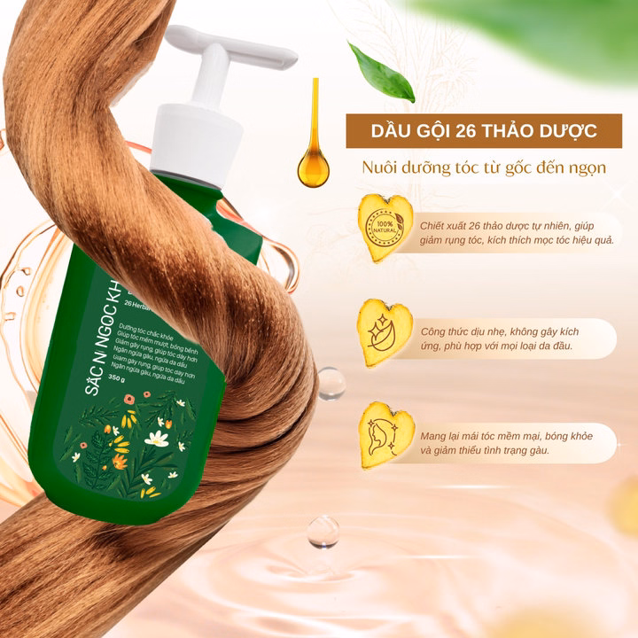 Đừng để mùa rụng tóc làm bạn mất tự tin! Chăm sóc tóc đúng cách với 26 loại thảo dược Sắc Ngọc Khang, bạn sẽ cảm nhận sự khác biệt sau một thời gian sử dụng.