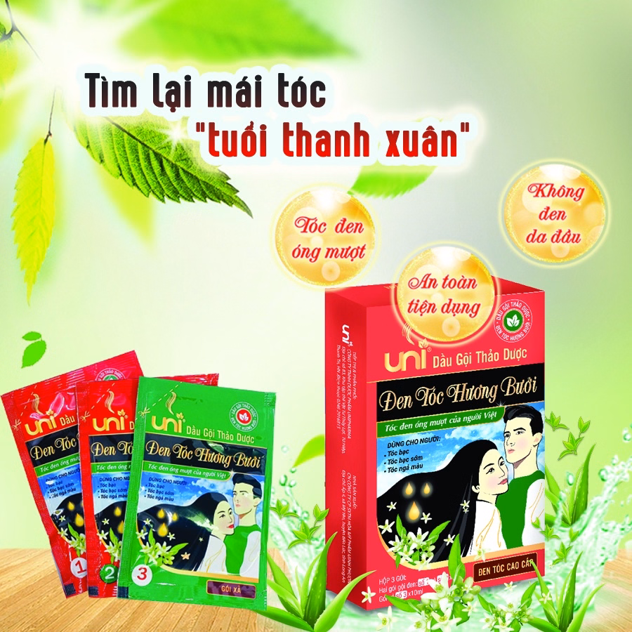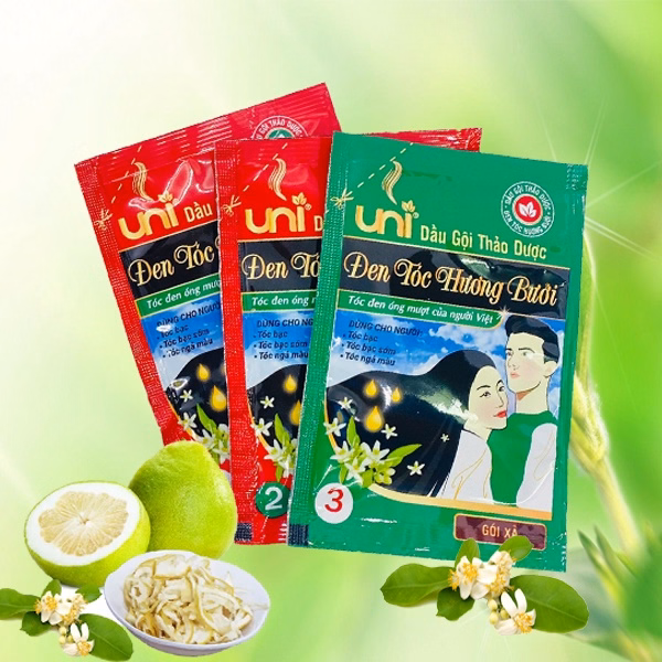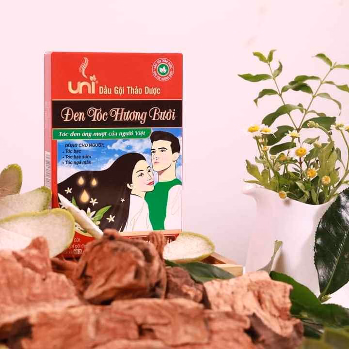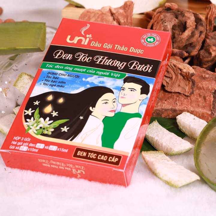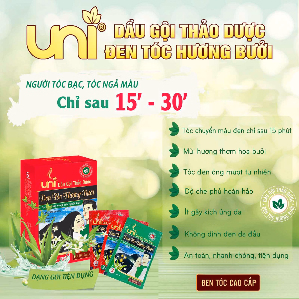 Dầu gội thảo dược đen tóc hương bưởi Uni – Tìm lại mái tóc tuổi xuân.