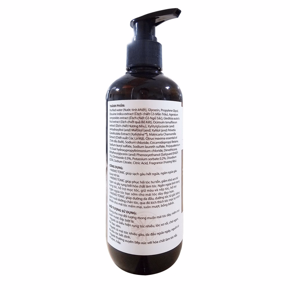 – Haemo Tonic giúp phục hồi tóc hư tổn, giảm khô xơ chẻ ngọn và gãy rụng bởi hóa chất làm tóc. Ngăn ngừa tình trạng rụng tóc, hỗ trợ mọc tóc, giữ màu và nếp tóc, hỗ trợ ngăn ngừa tóc bạc sớm cho mái tóc dày đẹp hơn.
