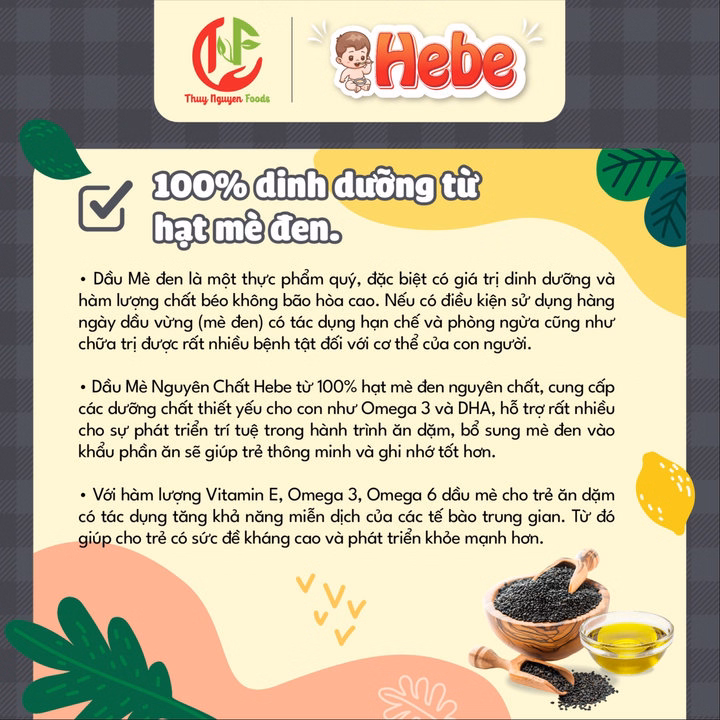– Tên sản phẩm: Hebe Dầu Mè Nguyên Chất