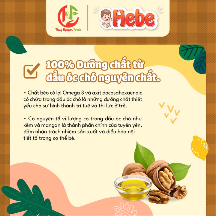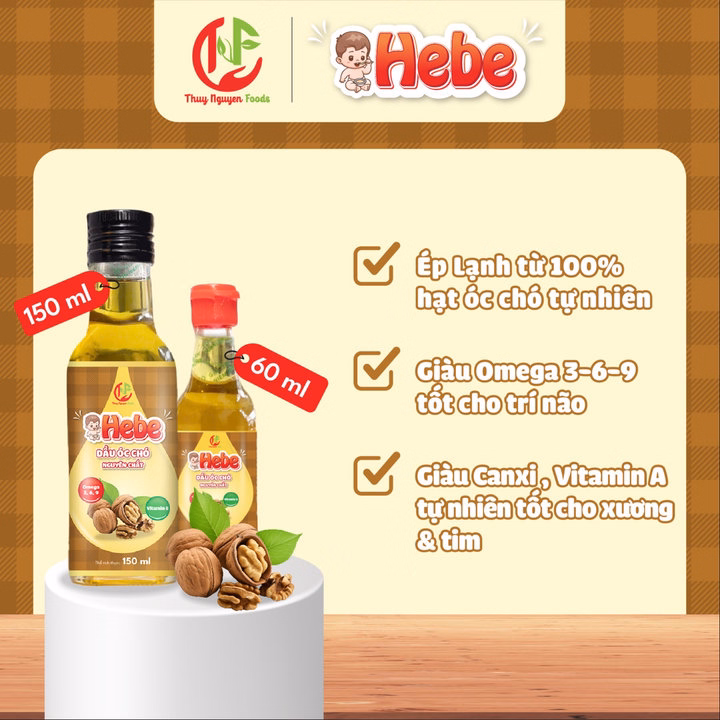 – Tên sản phẩm: Hebe Dầu Óc Chó Nguyên Chất