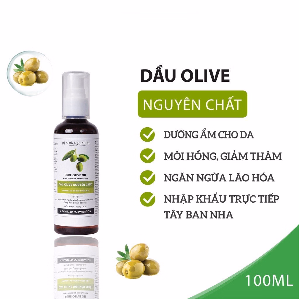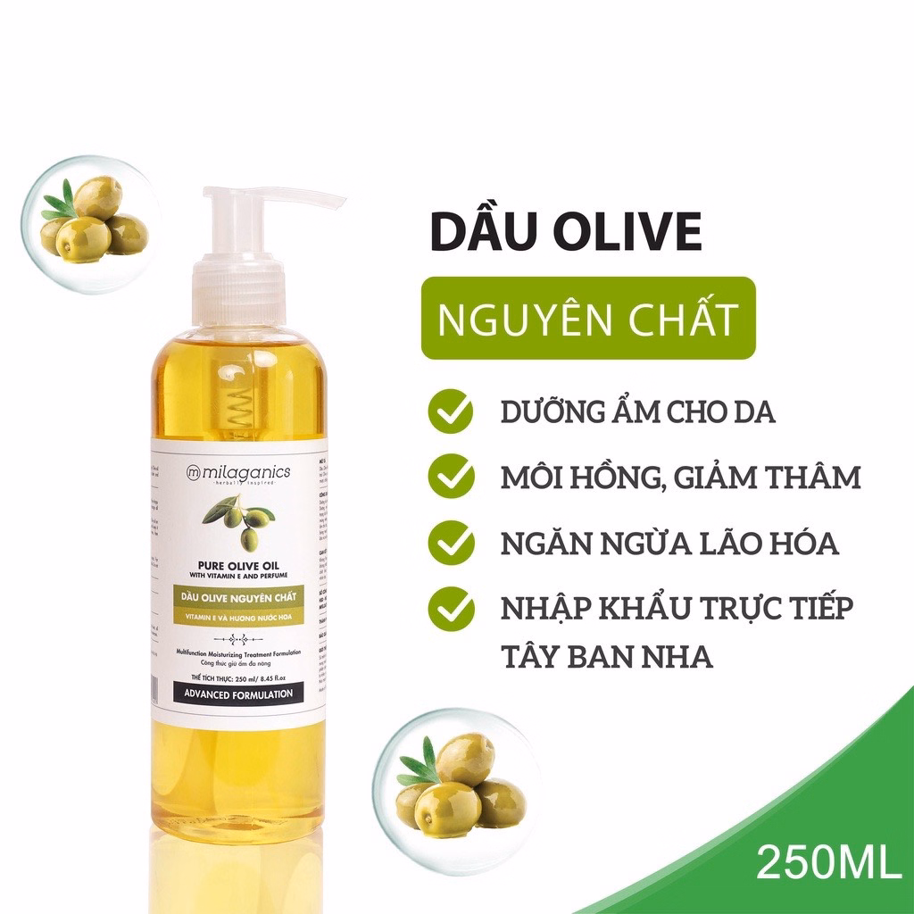 Nhờ những công dụng tuyệt vời đối với sắc đẹp, dầu Olive luôn được xem là thần dược của chị em phụ nữ từ nhiều thế kỷ qua. Dầu Olive Milaganics được tinh chế theo công nghệ ép lạnh, chắt lọc từ những quả Olive căng mọng đem đến vẻ đẹp mịn màng tươi sáng cho làn da và một mái tóc mềm mượt chắc khỏe.