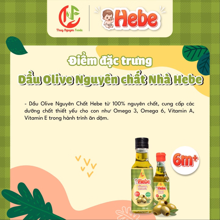 Dầu Olive Extra Virgin Hebe chứa hàm lượng lớn Omega 3, Omega 6 những chất béo có chứa trong sữa mẹ giúp não bộ và thể chất của bé phát triển toàn diện, giúp bé thoát khỏi tình trạng còi xương, chậm lớn, hệ thần kinh phát triển tốt phản xạ nhanh nhẹn và ngày càng thông minh.