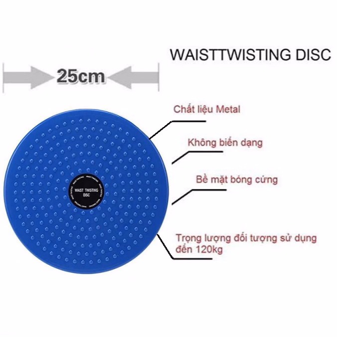 Thiết kế kích thước đĩa xoay eo giãm mỡ gọn nhé: Đường kính 25 cm dày 3cm, phù hợp với nhiều người đứng tập luyện