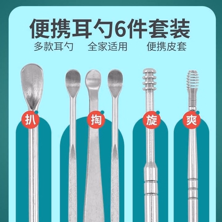 Dụng cụ lấy ráy tai 6 món bằng thép không rỉ- bộ ngoáy tai chuyên dụng , sạch sẽ, chuyên nghiệp.