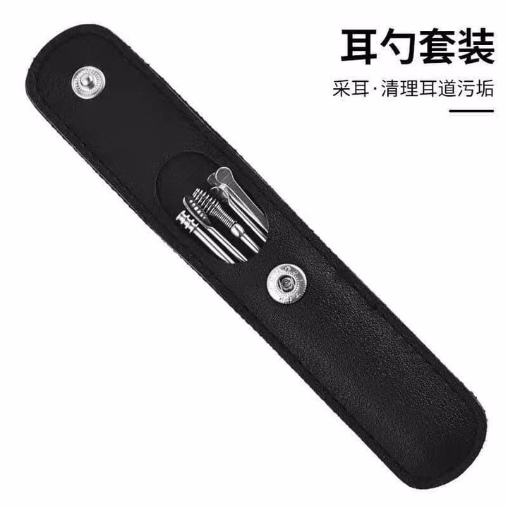 – Bộ dụng cụ lấy ráy tai 6 món đựng trong bao da thời trang gồm: