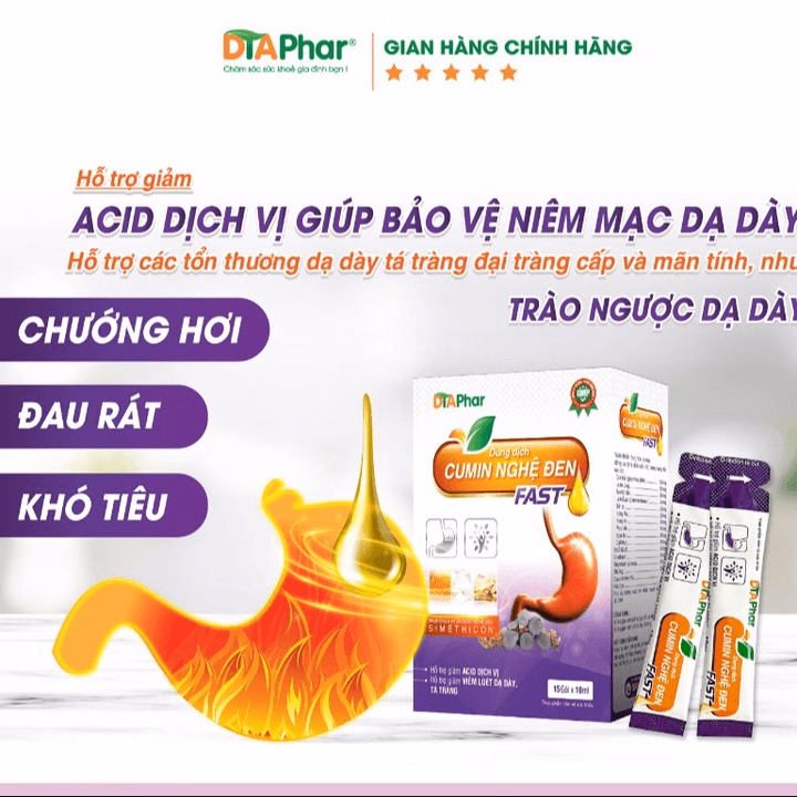 Dung Dịch Nghệ Đen Fast Hỗ Trợ Giảm Nhanh Acid Dịch Vị Bảo Vệ Niệm Mạc Dạ Dày Giảm Đau Và Trào Ngược 5 Gói Dùng Thử