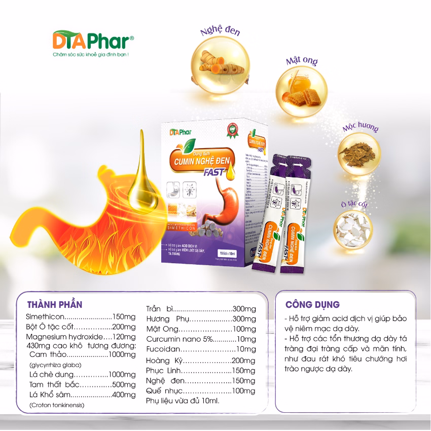 Dung Dịch Nghệ Đen Fast Hỗ Trợ Giảm Nhanh Acid Dịch Vị Bảo Vệ Niệm Mạc Dạ Dày Giảm Đau Và Trào Ngược Hộp 15 Gói