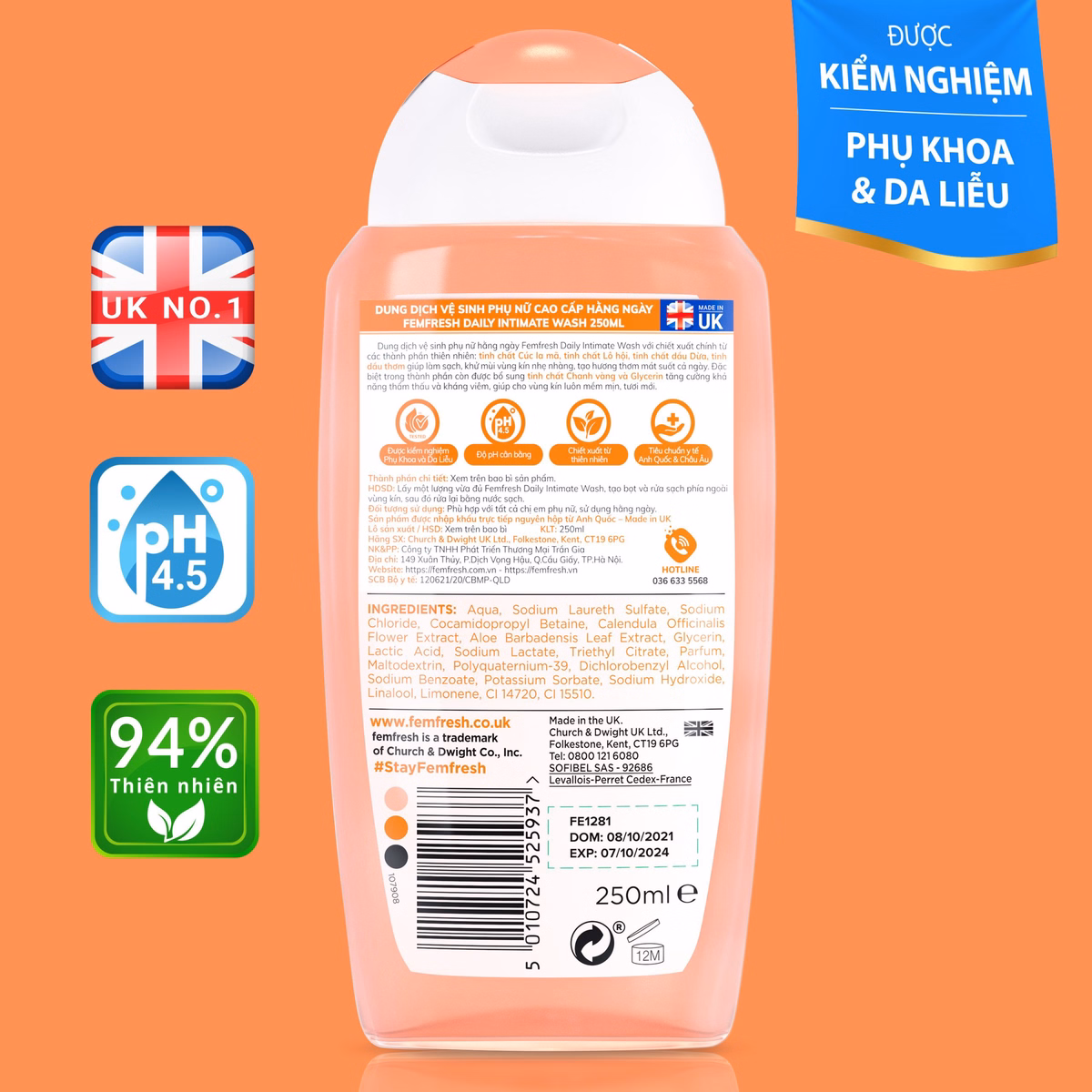 Tên sản phẩm: Dung Dịch Vệ Sinh Phụ Nữ Cao Cấp Hàng Ngày Daily Wash 250ml – Femfresh