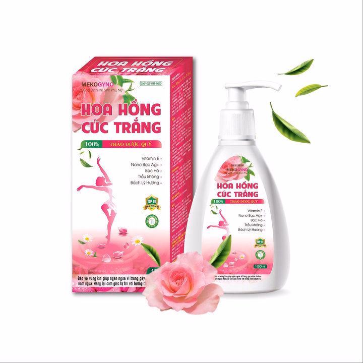 Dung Dịch Vệ Sinh Phụ Nữ Mekogyno Trầu Không & Nha Đam, Trầu Không & Trà Xanh , Hoa Hồng & Cúc Trắng 120Ml- Bidopharma Usa