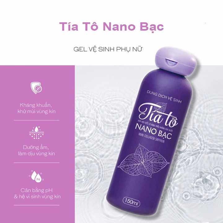 Dung dịch vệ sinh phụ nữ tía tô Nano bạc Hà 150ml , Làm sạch, khử mùi hôi, giữ mùi thơm vùng kín trong 24h