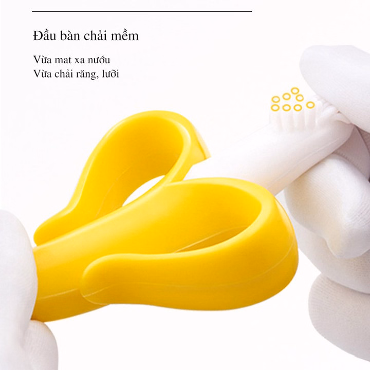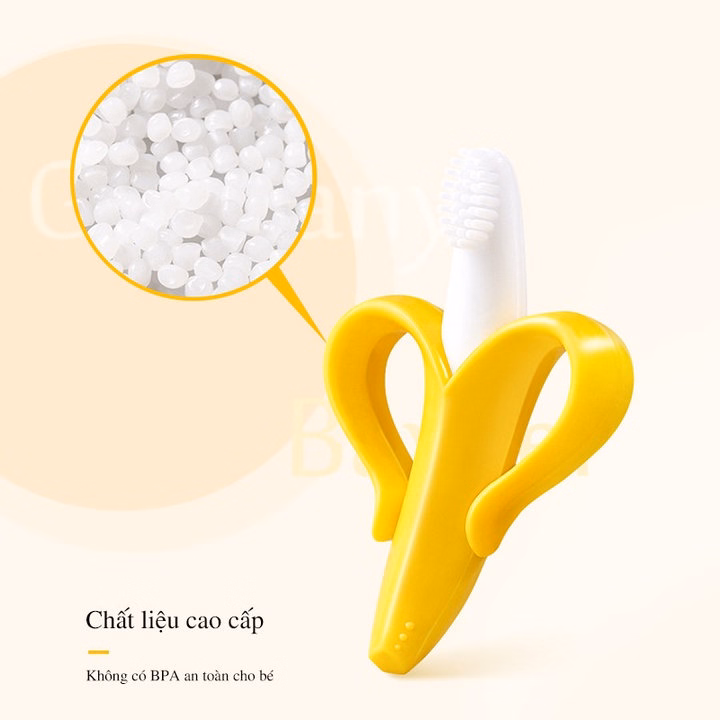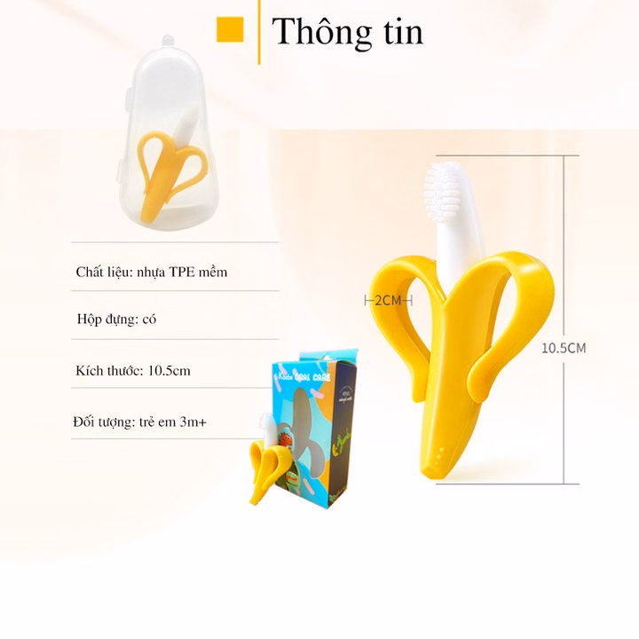 – Hình dạng với kích thước chiều dài như một chiếc bàn chải sẽ nhẹ nhàng xoa bóp nướu, làm giảm các cơn đau ngứa của trẻ. Hình dạng quả chuối màu vàng dễ thương cuốn hút và cho trẻ thích thú, quên đi cơn đau ngứa.