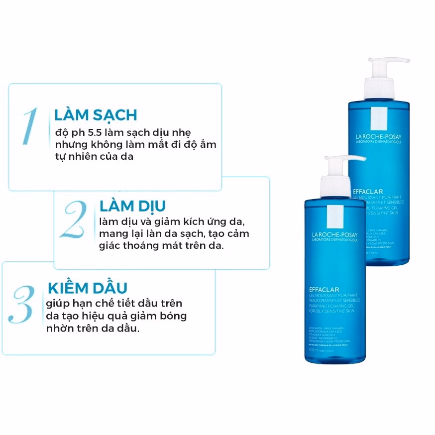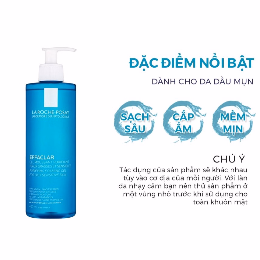 Sữa rửa mặt tạo bọt La Roche-Posay Effaclar cho da dầu nhạy cảm có công thức được lựa chọn kĩ càng với các thành phần làm sạch dịu nhẹ phù hợp cho da dầu và da mụn nhạy cảm.