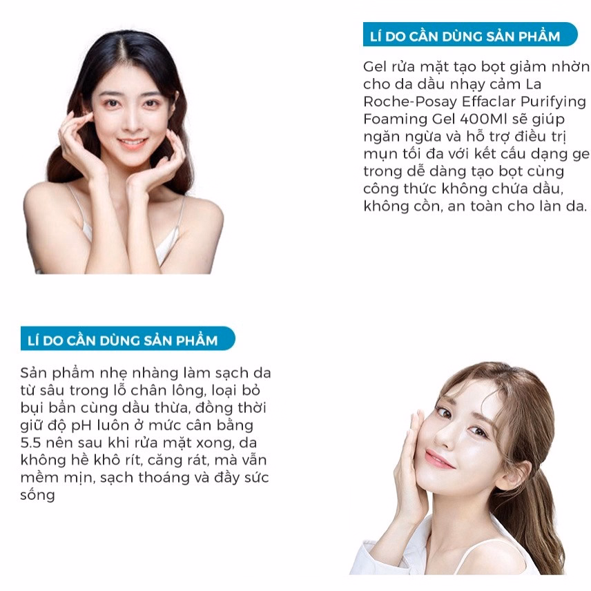 Gel rửa mặt tạo bọt giảm nhờn cho da dầu nhạy cảm La Roche-Posay Effaclar Purifying Foaming Gel 400ml sẽ giúp ngăn ngừa và hỗ trợ điều trị mụn tối đa với kết cấu dạng gel trong dễ dàng tạo bọt cùng công thức không chứa dầu, không cồn, an toàn cho làn da.