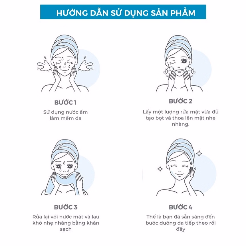 Làm ẩm da với nước ấm, cho một lượng vừa đủ sản phẩm ra tay, tạo bọt, thoa sản phẩm lên mặt, tránh vùng da quanh mắt.