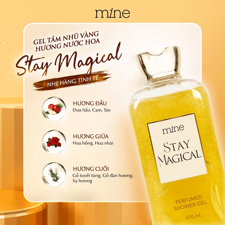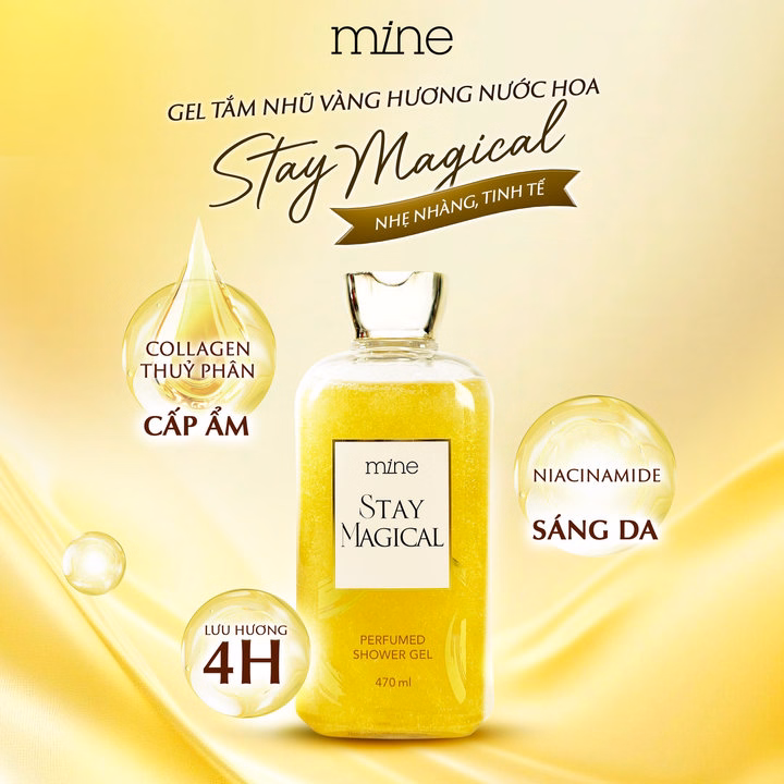 Gel Tắm Trắng Nhũ Vàng Nước Hoa Mine Stay Magical 500G