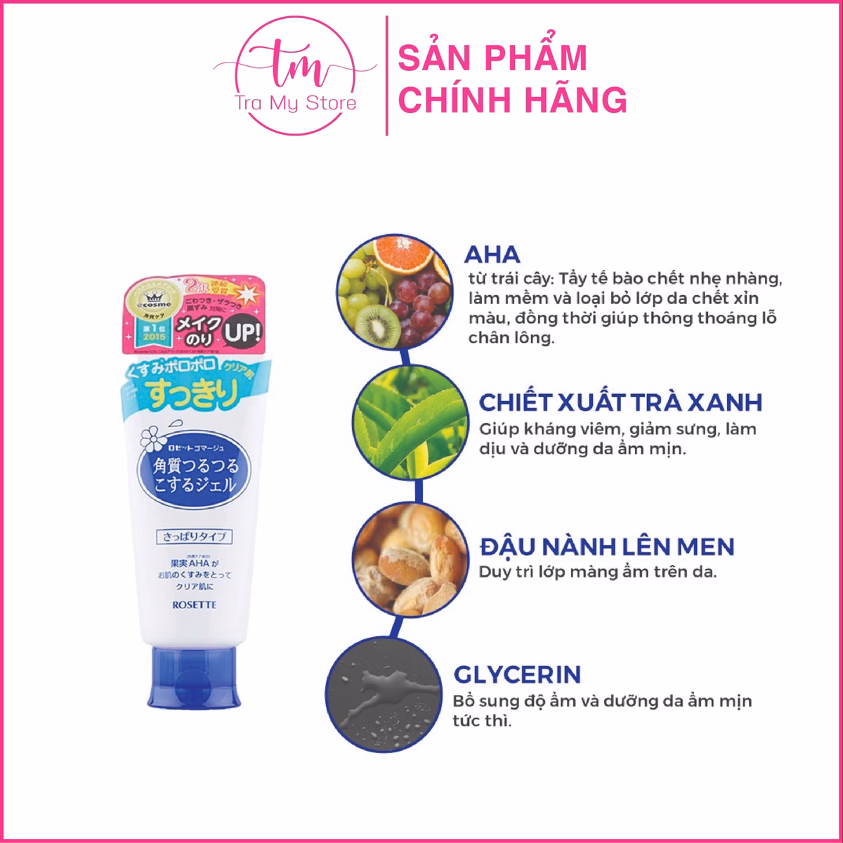 Gel tẩy tế bào chết Rosette Nhật Bản là sản phẩm nổi tiếng giàu các loại axit trái cây vừa tẩy tế bào chết an toàn vừa tăng cường độ ẩm cần thiết cho da.