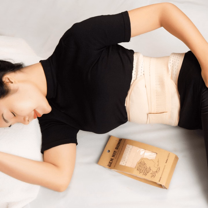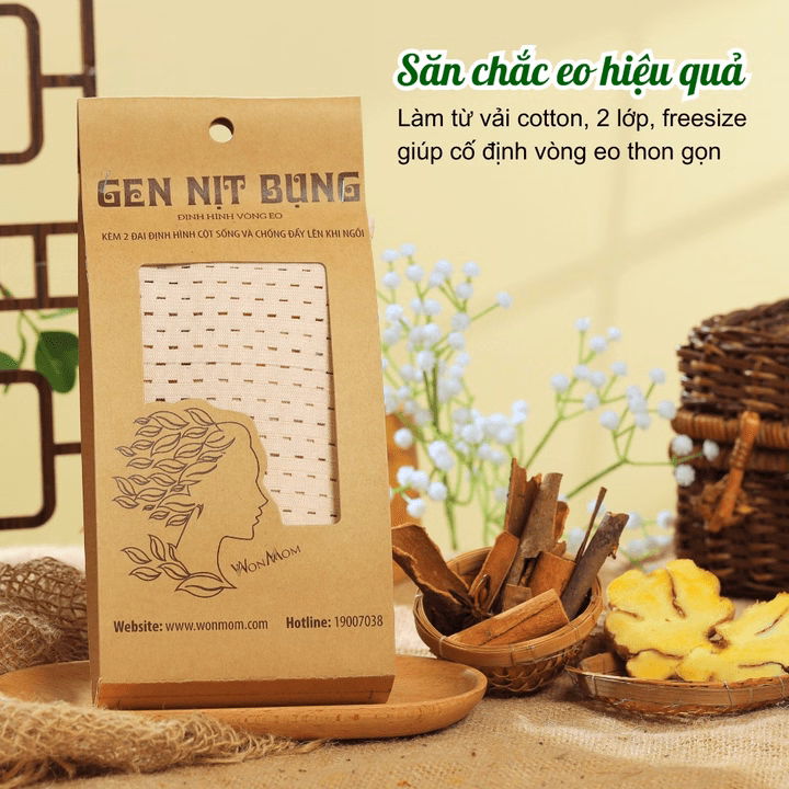 Gen nịt bụng có đai Wonmom là cách sử dụng miếng gen hoặc tã chéo quấn chặt vào bụng để tạo thành áp lực vật lý khiến vòng bụng của người phụ nữ dần trở nên săn chắc như cũ.