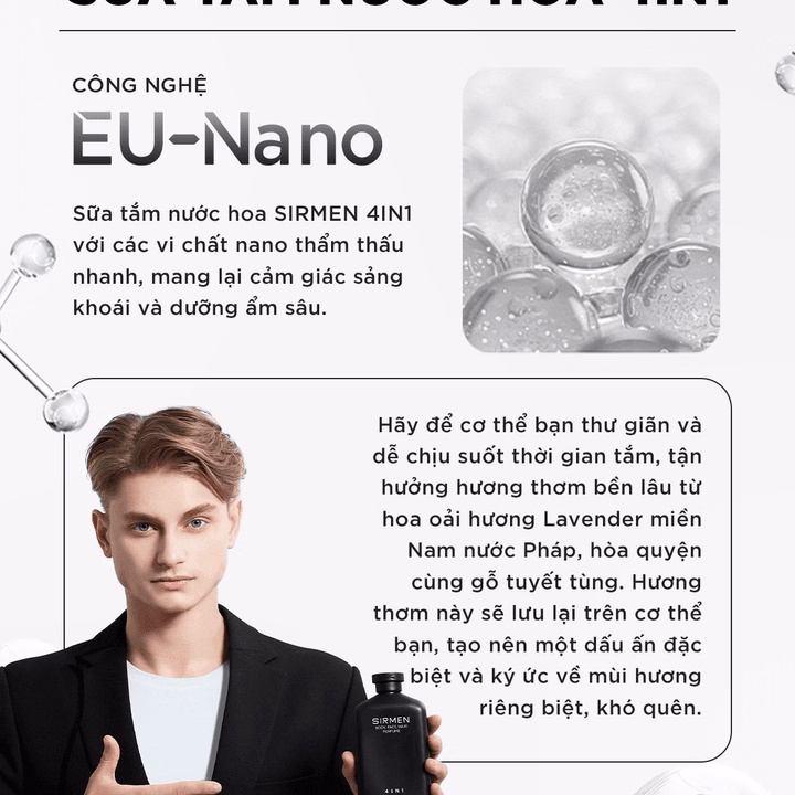 – Sirmen mỹ phẩm cao cấp công nghệ Eu-Nano dành cho khách hàng nam giới trẻ trung sành điệu.