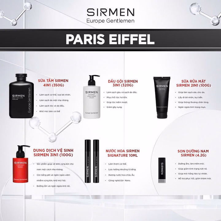 – Sirmen mỹ phẩm cao cấp công nghệ Eu-Nano dành cho khách hàng nam giới trẻ trung sành điệu.