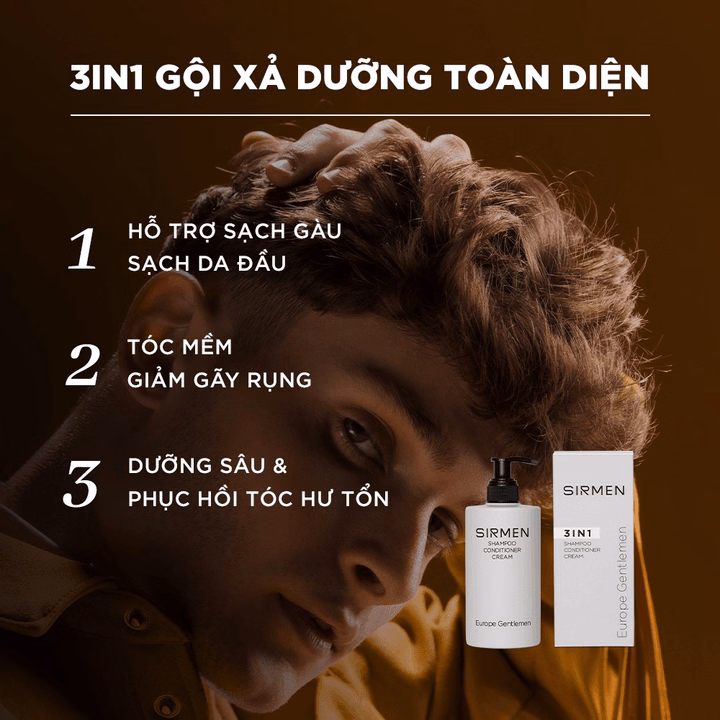 3. Dầu gội nam 3 in 1 hương nước hoa châu Âu Sirmen Europe Gentlemen giúp sạch da đầu, tóc chắc khoẻ công nghệ Eu-Nano 320g