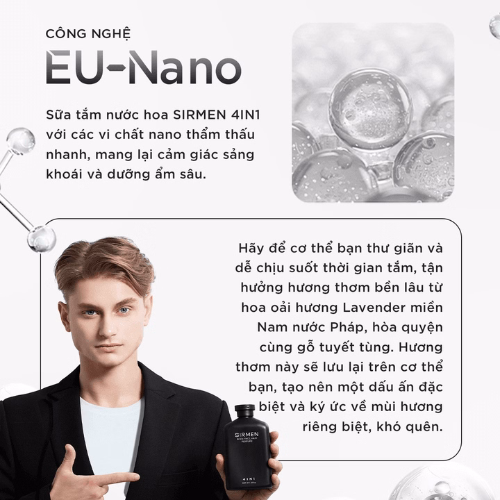 – Sirmen mỹ phẩm cao cấp công nghệ Eu-Nano dành cho khách hàng nam giới trẻ trung sành điệu.