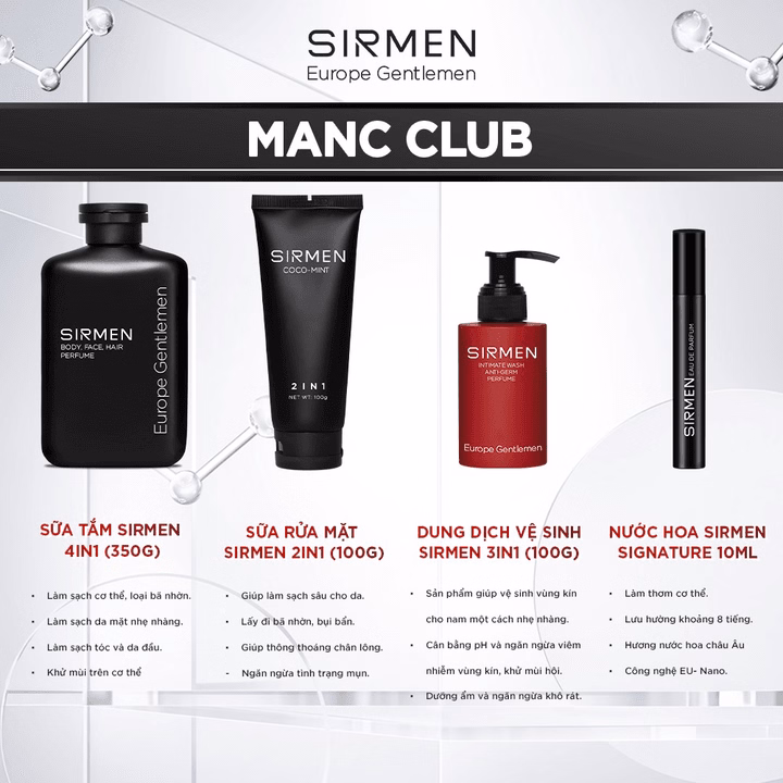 – Sirmen mỹ phẩm cao cấp công nghệ Eu-Nano dành cho khách hàng nam giới trẻ trung sành điệu.
