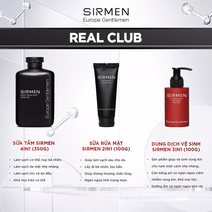Giftbox Real Club Sirmen Gồm Sữa Tắm, Dung Dịch Vệ Sinh, Sữa Rửa Mặt Hương Nước Hoa Châu Âu