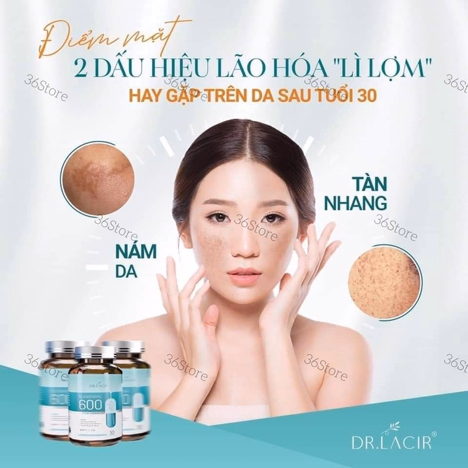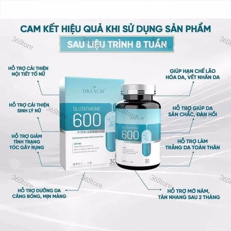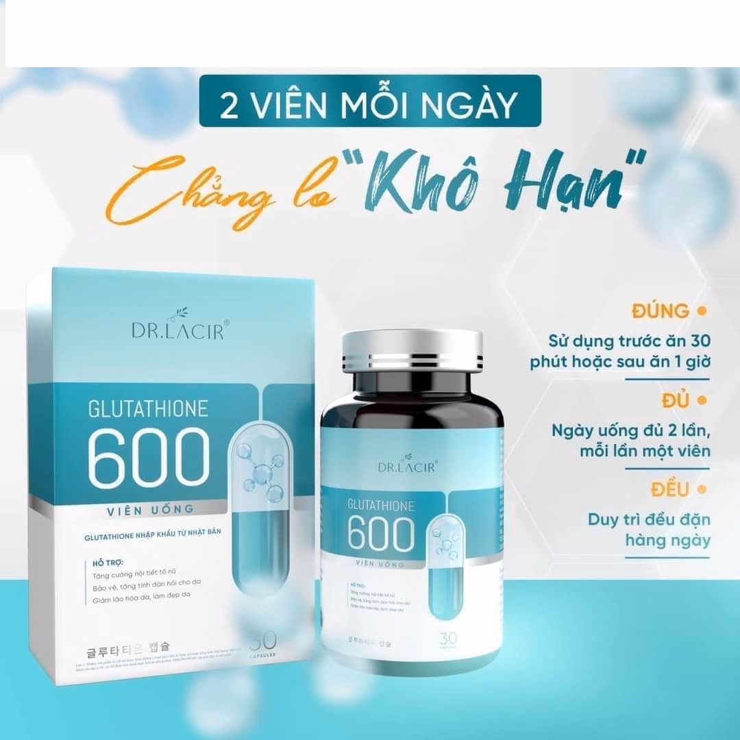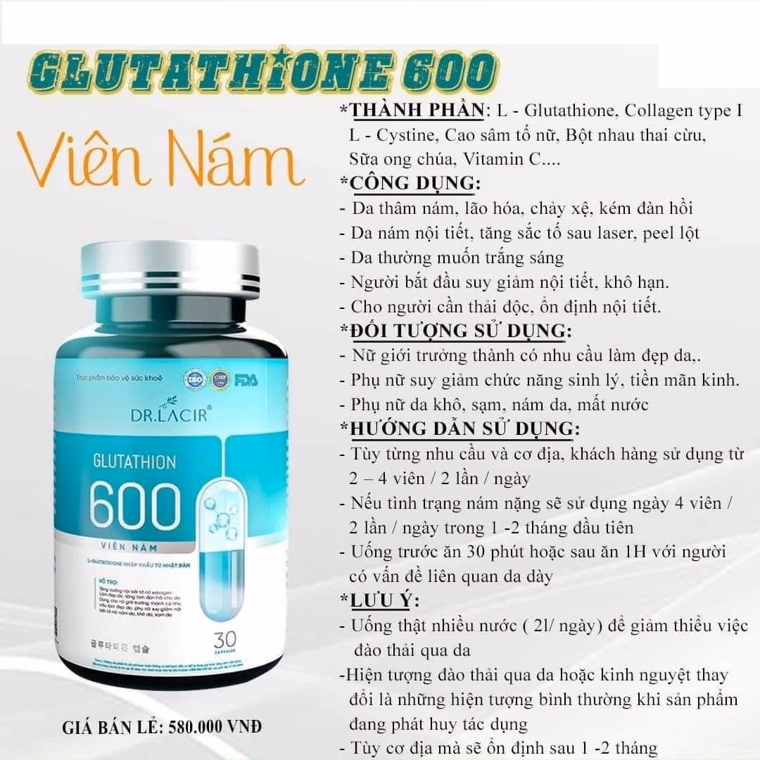 Glutathione 600 Viên Uống Trắng Da Giảm Thâm Nám, Cân Bằng Nội Tiết Tố Nữ – Hộp 30 Viên Lm05