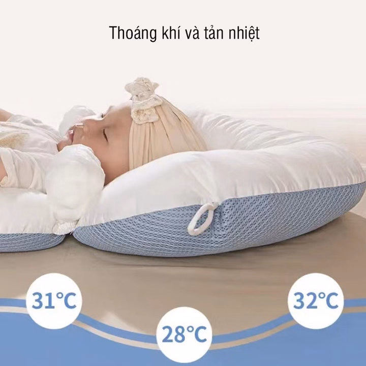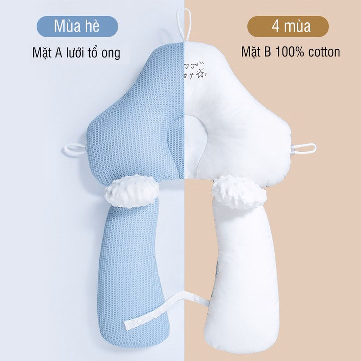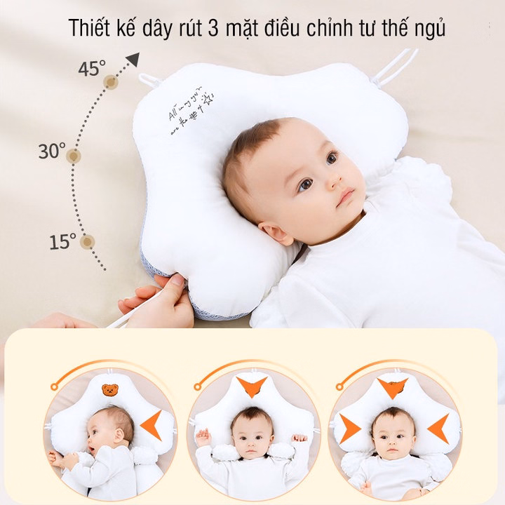 – Gối ngủ cho bé có dây rút 2 bên giúp định hình đầu bé