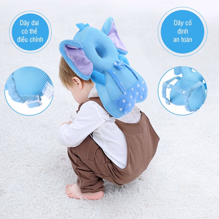– Khi bé tập đi, chạy và bò, bộ cánh bảo vệ đầu bé nhỏ xinh xắn này sẽ giúp bảo vệ đầu bé. sử dụng thoáng khí làm giảm tác động. Bé dễ bị ngã xuống an toàn, đau đầu và vai khi tập đi, chạy và tập bò