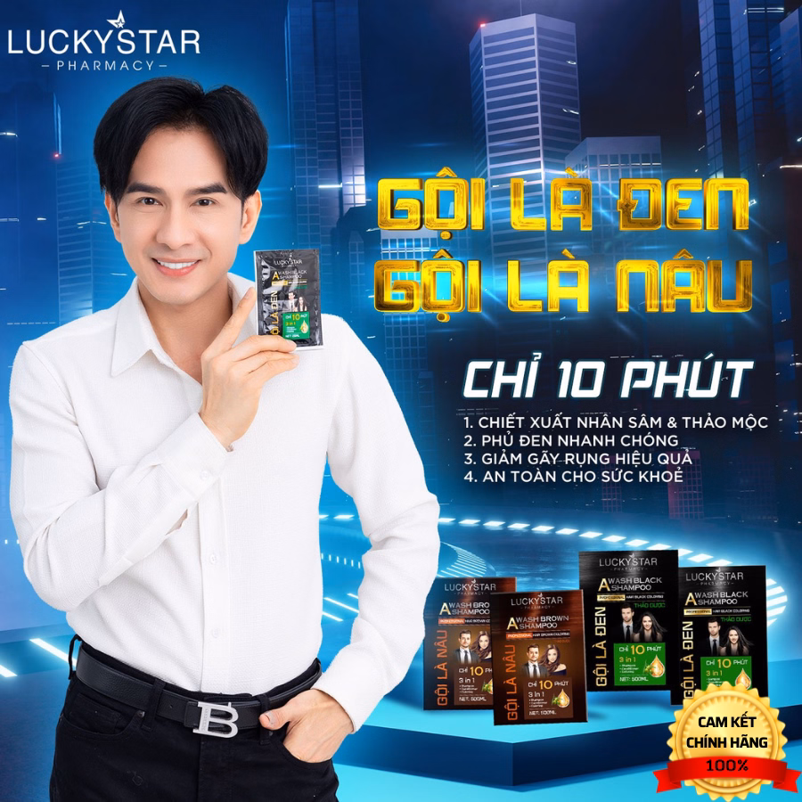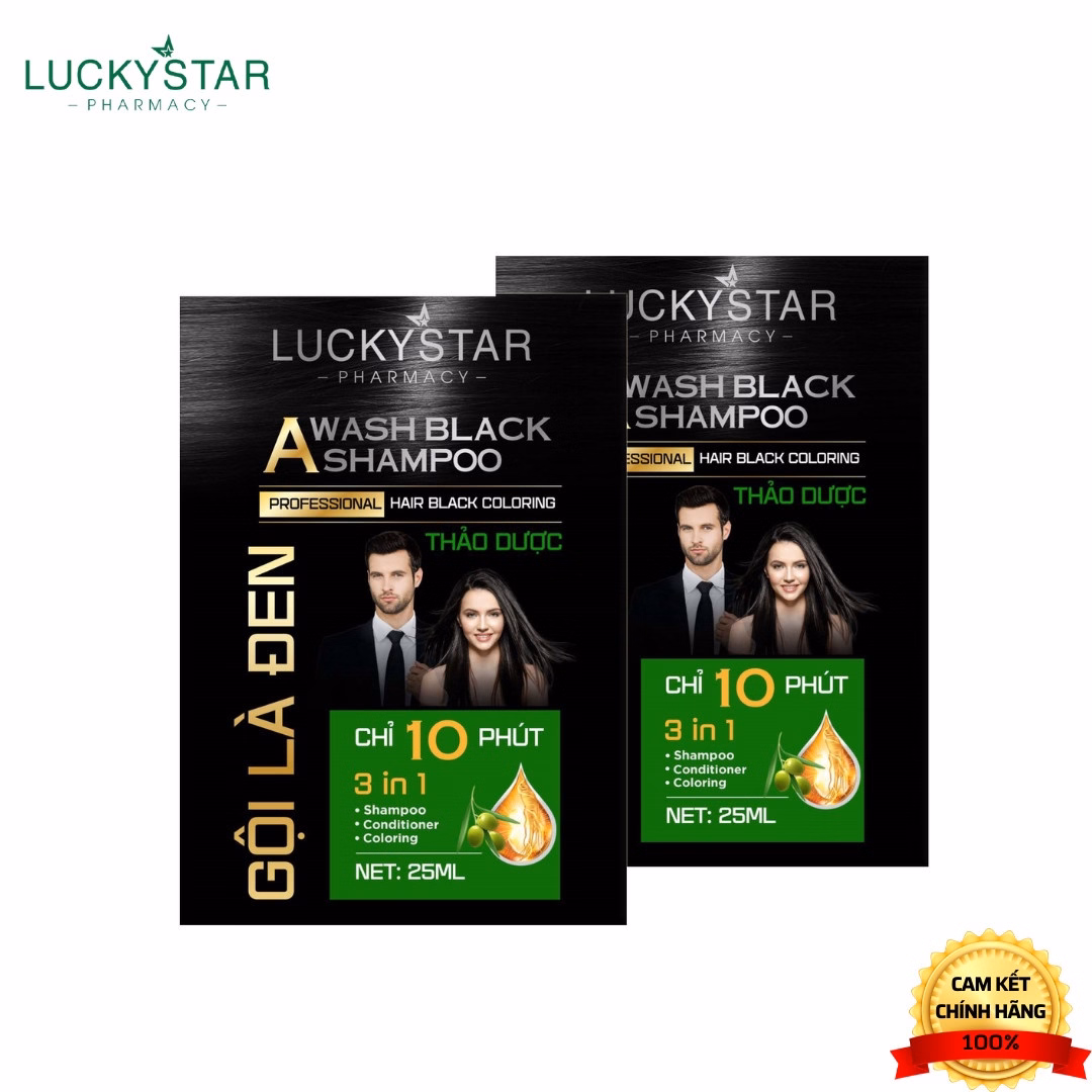 Gội Là Đen Lucky Star mang lại mái tóc đen bóng tự nhiên, ngăn ngừa rụng tóc, không gây kích ứng da, không có tác dụng phụ.