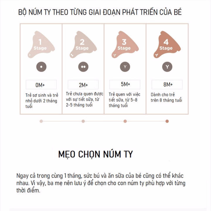Tuổi sử dụng: Núm 1: 0-2M, Núm 2: 2-5M, Núm 3: 5-8M, Núm 4: 8M+