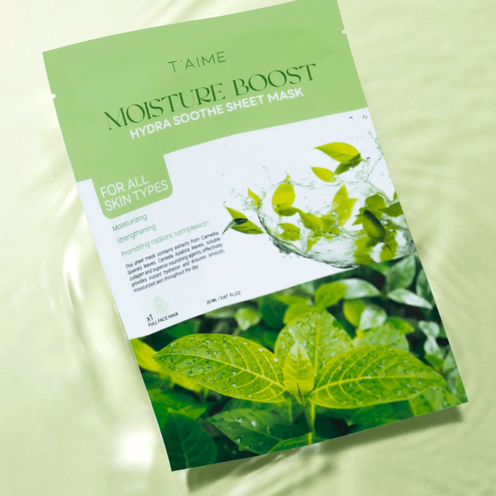 1 Hộp 5 miếng mặt nạ giấy dưỡng ẩm sâu phục hồi da T’aime Moisture Boost Hydra Soothing là lựa chọn hoàn hảo cho việc chăm sóc da hàng ngày.