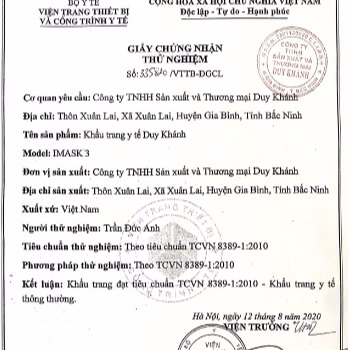 Giấy tờ kiểm nghiệm chất lượng đầy đủ, hàng chuẩn công ty có tên hiệu in dập nổi trên khẩu trang.