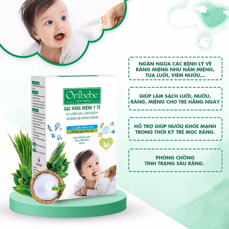 Gạc răng miệng y tế Oribebe được xem là một trong những “trợ thủ đắc lực” để làm sạch lưỡi, nướu và răng miệng cho bé yêu nhà bạn. Không chỉ dừng lại ở khả năng làm sạch cực tốt hay ngăn ngừa các bệnh lý về răng miệng mà gạc răng miệng y tế Oribebe còn mang lại cảm giác nhẹ nhàng và an toàn cho bé, mẹ chẳng lo ngại bé khóc quấy hay khó chịu trong mỗi lần sử dụng.