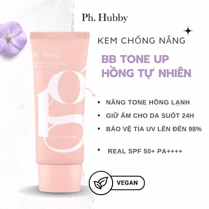 Hộp Kem Chống Nắng Thuần Chay Ph Hubby Pink Bb Tone Up Sun 50G Nâng Tone Hồng Lạnh