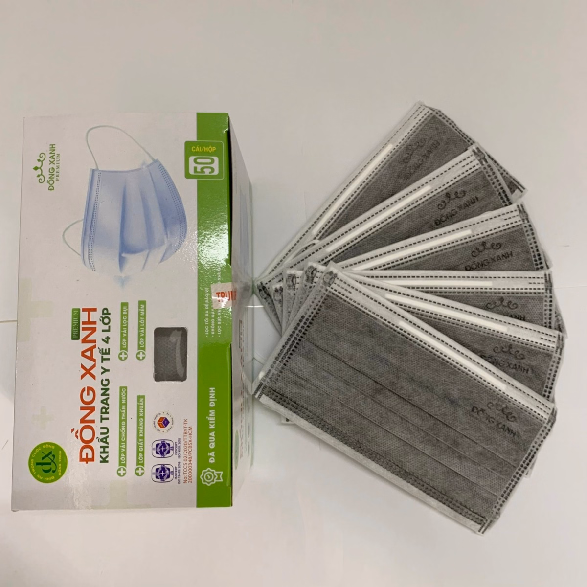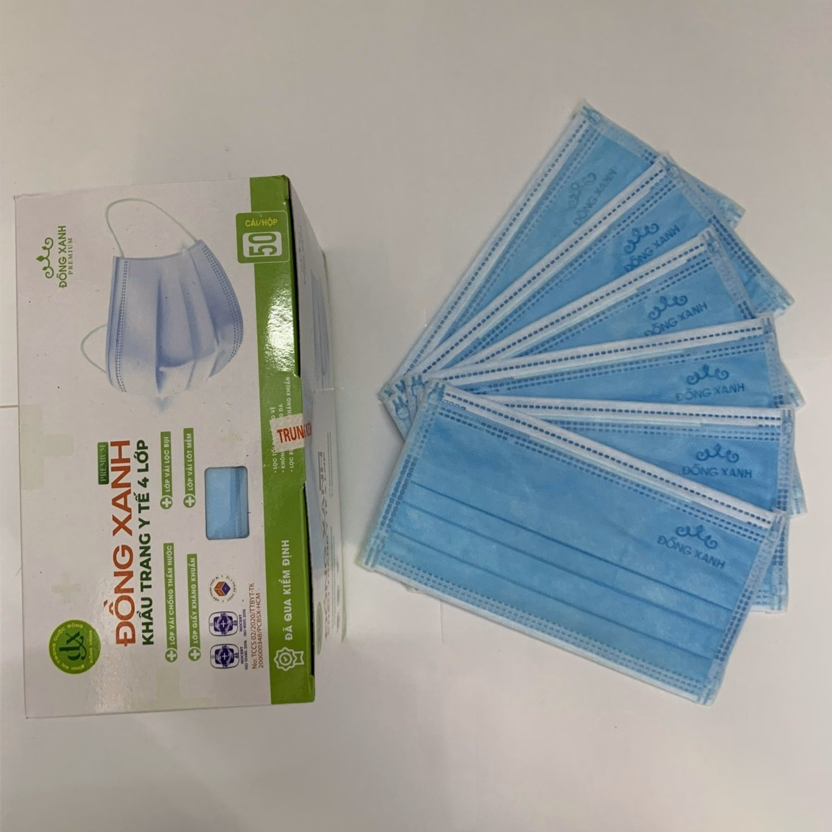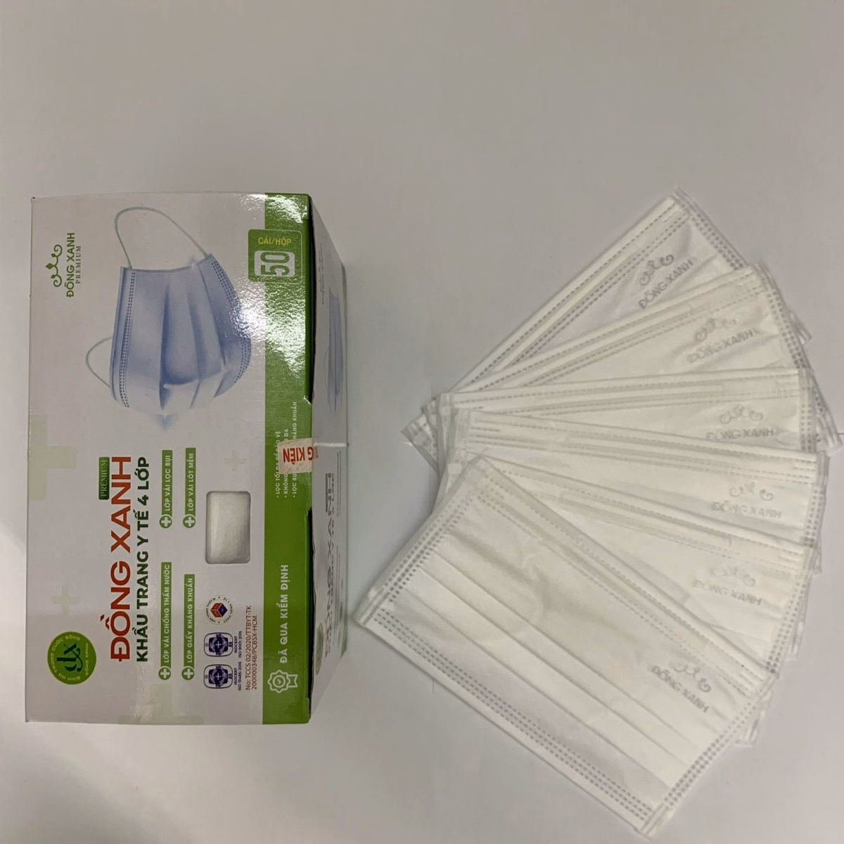 [Hộp] Khẩu Trang Y Tế 4 Lớp (10 Cái/Túi, 5 Túi/Hộp) – Đồng Xanh Premium