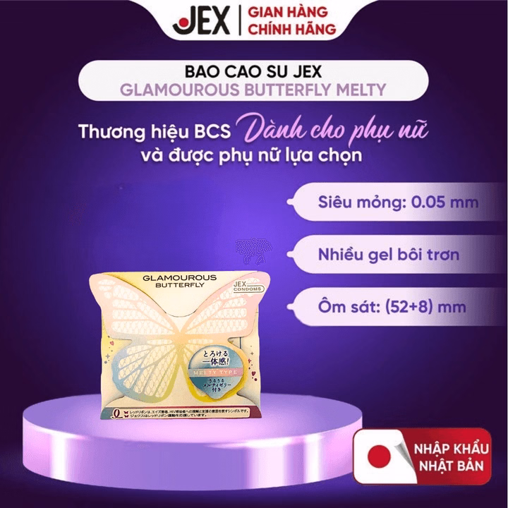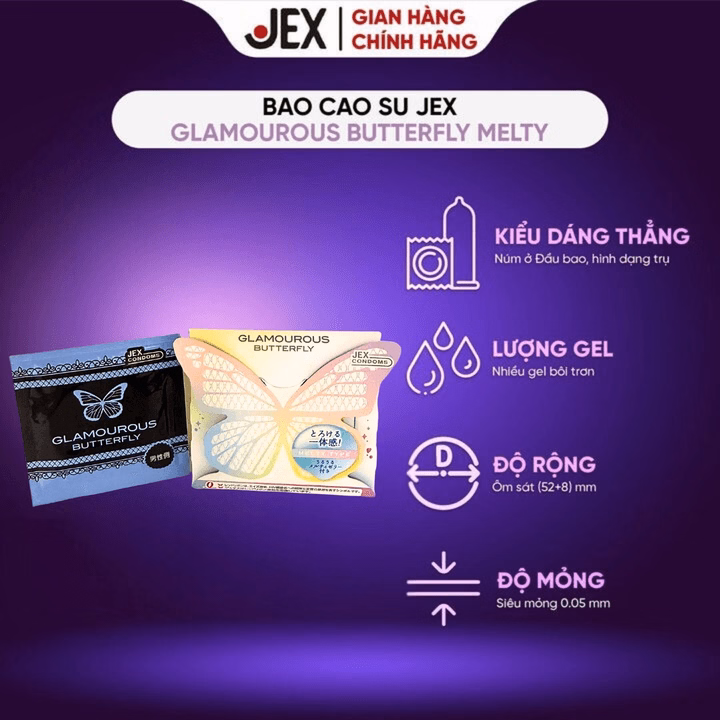 Bao cao su Glamourous Butterfly Melty là lựa chọn hoàn hảo dành cho những ai yêu thích sự mềm mại và tinh tế.