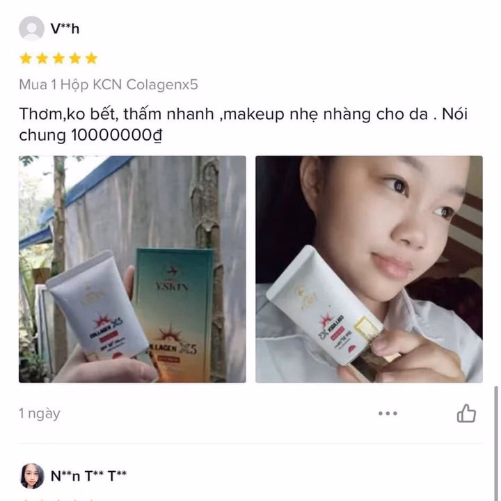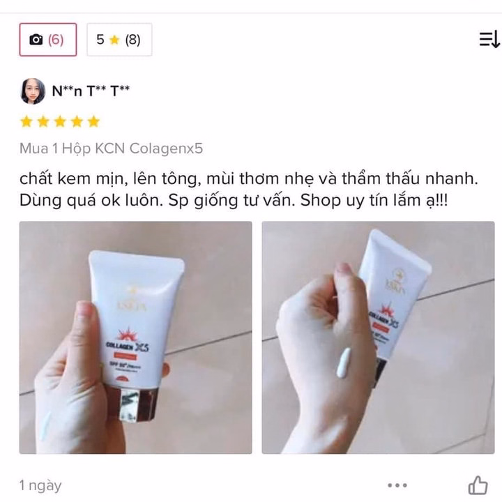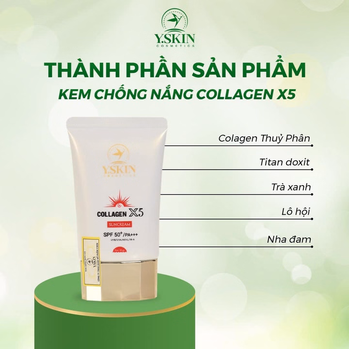 Thành phần: Collagen thủy phân, Titan doxit, Trà xanh, Lô hội, Nha đam. Sps 50, Pa +++