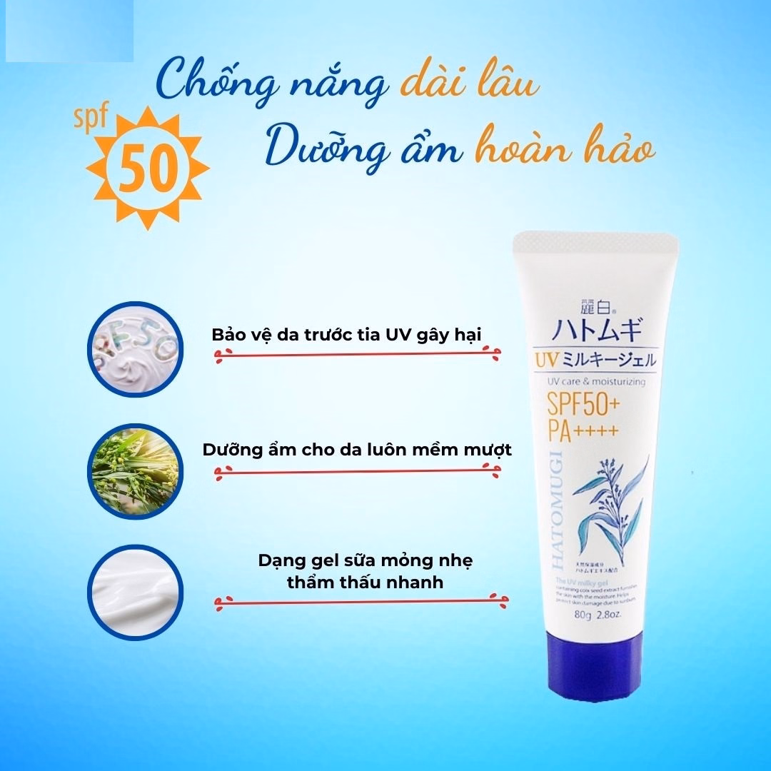 Kem chống nắng Hatomugi Uv Care & Moisturizing Spf50+ Pa++++ chiết xuất từ hạt ý dĩ giúp dưỡng ẩm và làm sáng da